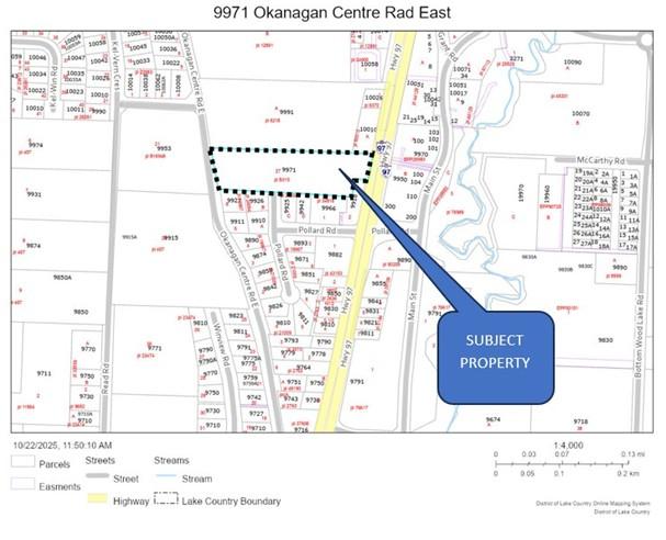 The District of Lake Country Council will consider Zoning Amendment Bylaw 1301, 2025 for 9971 Okanagan Centre Rd. East from RR2 – Rural Residential to C1 – Town Centre Commercial.