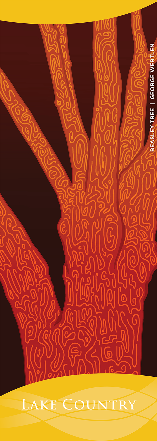 Image ![]() | Artwork title: Beasley Tree Artist: George Wertlen Artist Statement: All my banner designs are centered around the nature and animals of Lake Country. This one is a somewhat abstracted illustration of one of the trees in Beasley Park, my favourite tree as it’s the best one for climbing. |